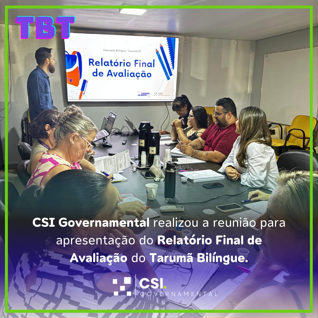 No último mês de 2024, ocorreu a reunião para apresentação do Relatório final de Avaliação do Tarumã Bilíngue durante o segundo semestre. Este marco reforça o compromisso do município de Tarumã e da CSI Governamental em promover uma educação pública inovadora, inclusiva e alinhada as demandas de um mundo globalizado.