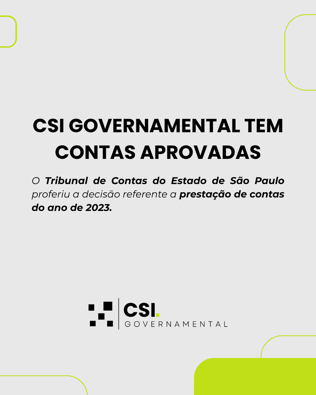 Na última segunda-feira, dia 19 de maio, foi publicado no Diário Oficial do Estado de São Paulo, a aprovação das contas da CSI Governamental referente ao exercício de 2023 pela fiscalização do Tribunal de Contas do Estado de São Paulo (TCE-SP). Após a auditoria e as verificações do Tribunal de Contas do Estado, foi proferida a decisão com um parecer favorável, indicando conformidade das atividades realizadas pela CSI Governamental.