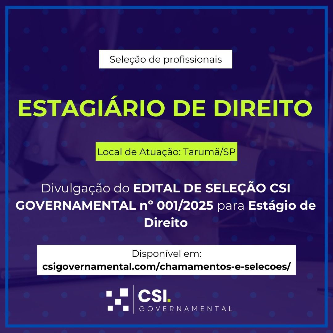 O edital de seleção para estagiários de Direito n° 001/2025 se encontra disponível, para acessá-lo entre em: